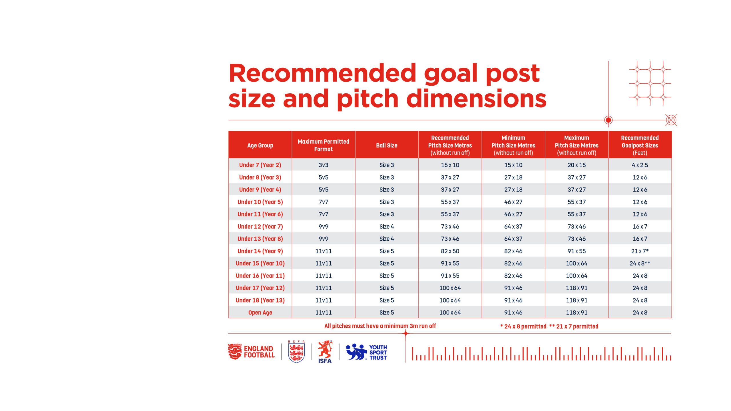 All formats are maximum formats, and formats smaller than the specified maximum can be used at each age/year group and utilising a variety of formats as part of the football offer is encouraged.